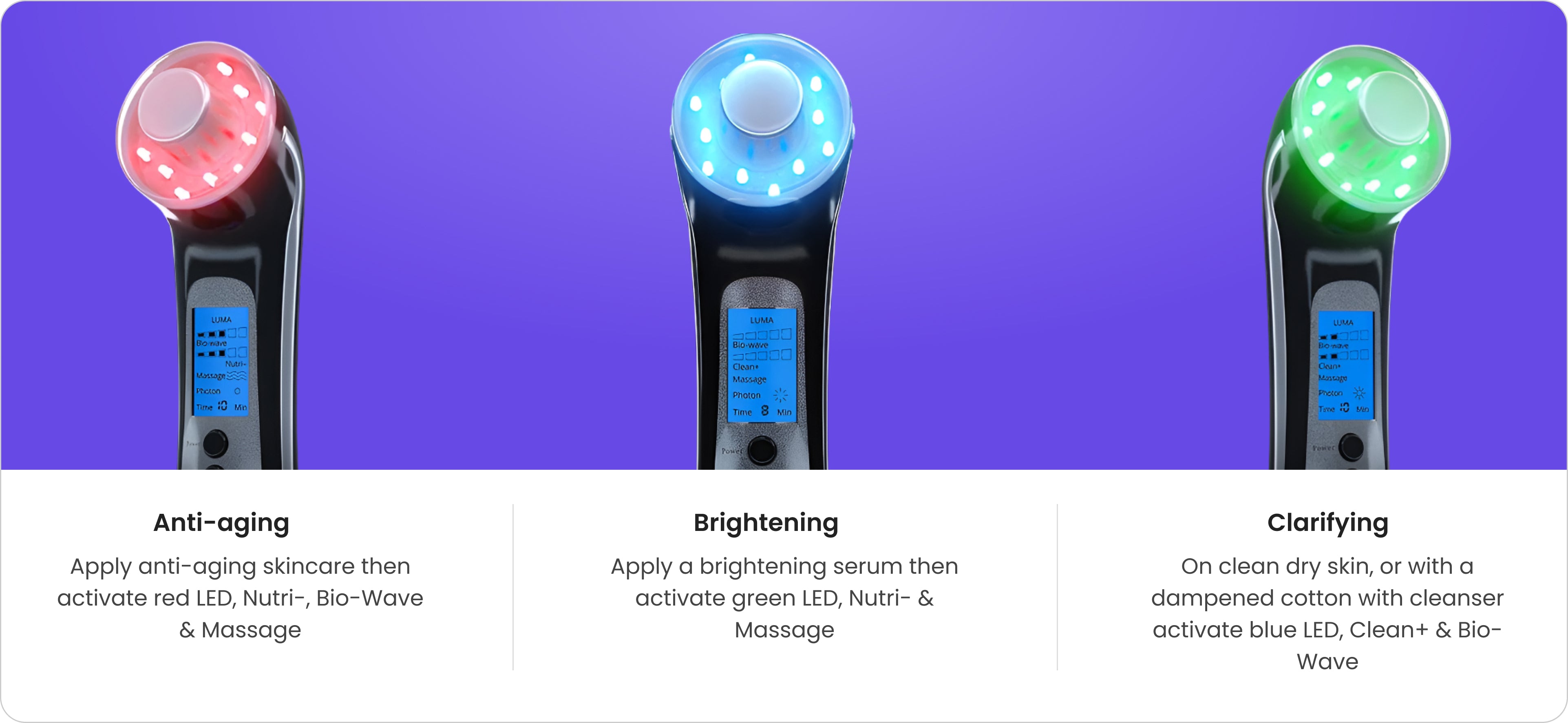 Use the Luma Wand 3 times per week, for 10-15 minutes maximum.